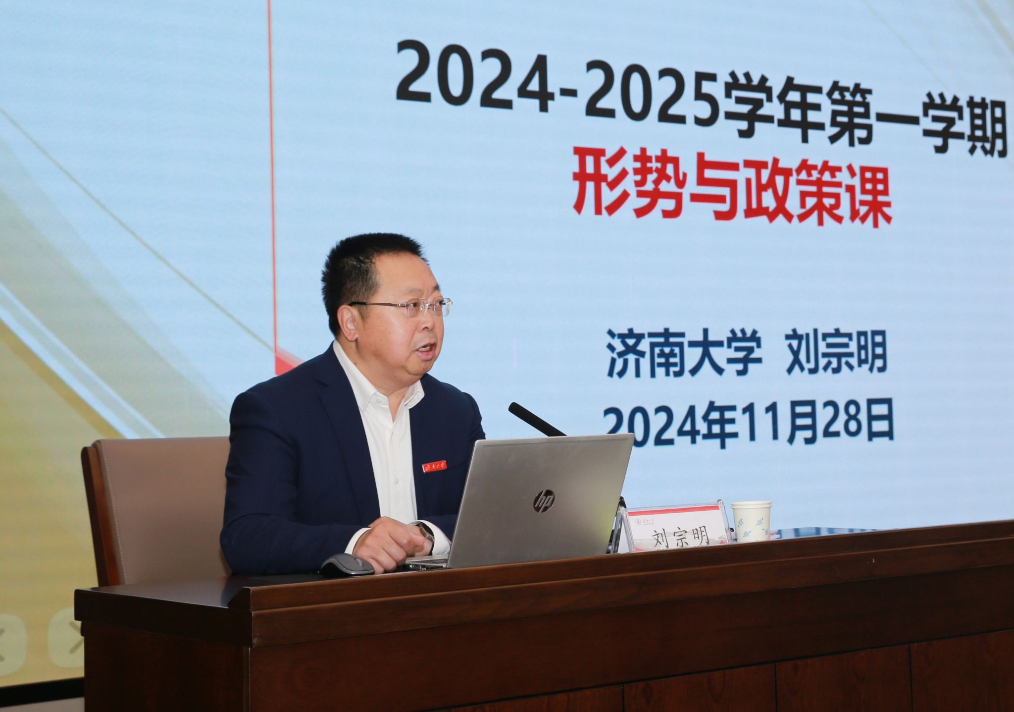 课堂上,刘宗明校长系统讲解了党的二十届三中全会的重大时代意义、《中共中央关于进一步全面深化改革、推进中国式现代化的决定》提出的进一步全面深化改革重大举措,特别是关于统筹推进教育科技人才体制机制一体改革的新部署新要求,深刻阐释了习近平总书记关于全面深化改革的一系列新思想、新观点、新论断。他指出,党的二十届三中全会是新的历史起点上进一步全面深化改革、推进中国式现代化的总动员、总部署,是面对纷繁复杂的国际国内形势,面对新一轮科技革命和产业变革,面对人民群众新期待召开的一次重要会议。同时,他结合学生专业实际,勉励同学们要坚定理想信念,切实以习近平新时代中国特色社会主义思想凝心铸魂,展示新时代青年的良好风貌,凝聚推进中国式现代化的青春力量。