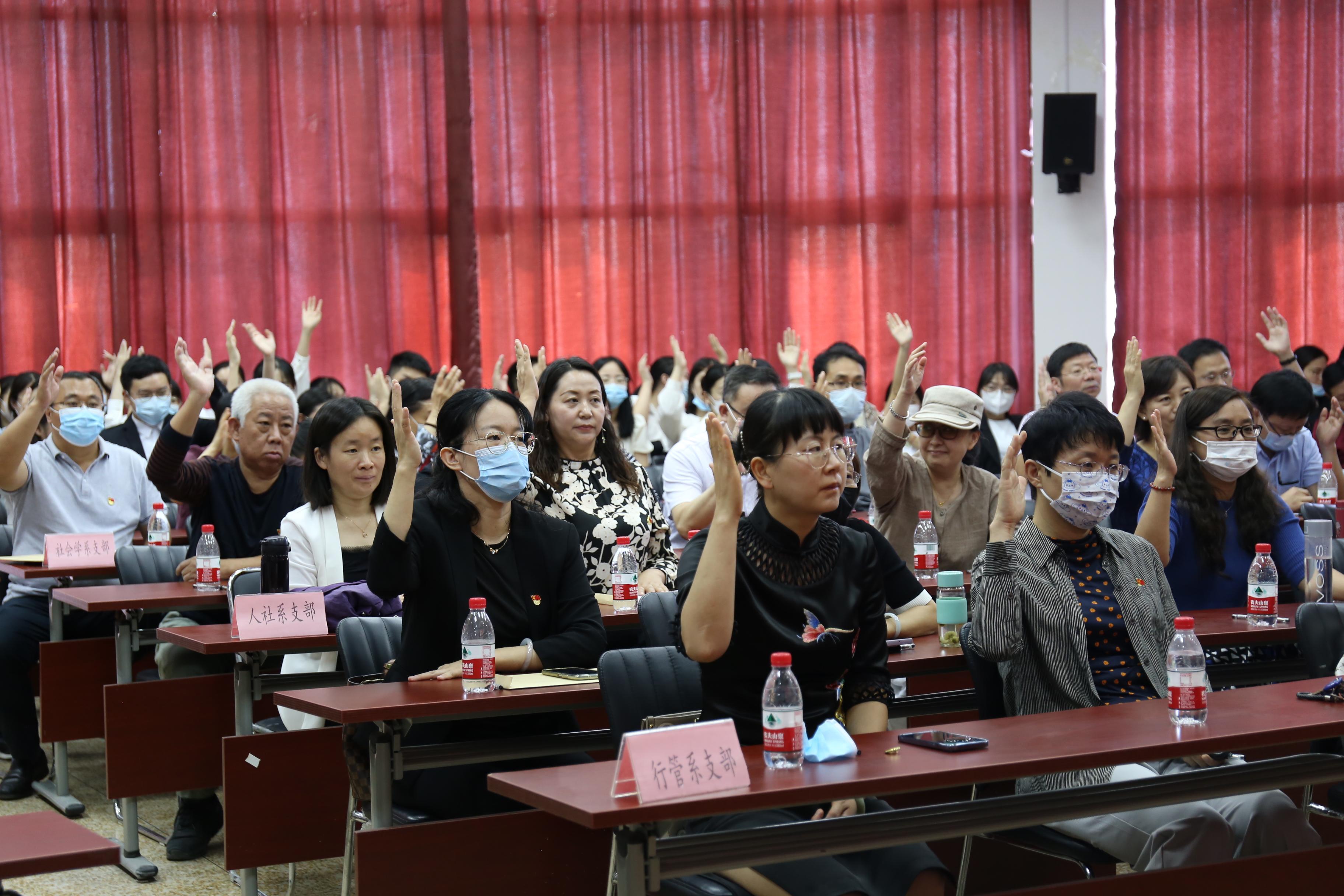 党委书记徐庆国,院长高功敬,正处级组织员国迎春,党委副书记、副院长李涛,院长助理朱丽敏以及124名党员师生参加大会。大会第一阶段由高功敬同志主持,第二阶段由徐庆国同志主持。