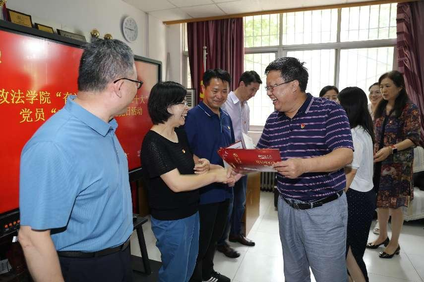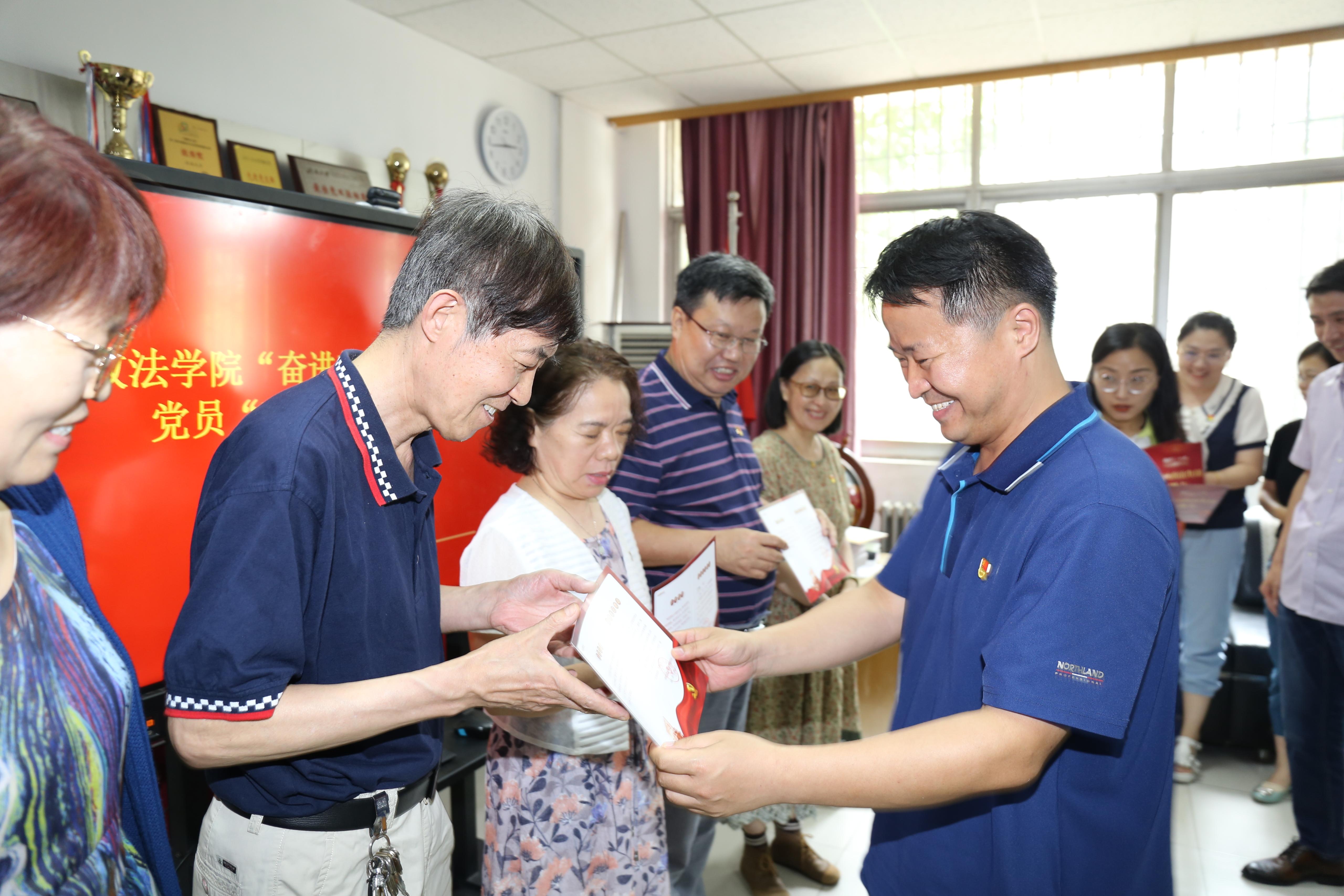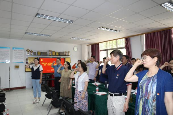 6月29日下午,学院举办“奋进新征程,喜迎二十大”党员“政治生日”主题党日活动。学院党委书记徐庆国,院长高功敬,正处级组织员国迎春,党委副书记、副院长李涛,院长助理朱丽敏参加活动。学院领导为党员教师颁发政治生日贺卡并赠书。全体党员面向党旗庄严宣誓,重温入党誓词,党员代表向大家分享了自己入党的初心和故事、畅谈了入党以来的感受和体会、表达了从事教书育人事业的责任和自豪。徐书记表示,希望各位老党员同志传承红色精神、坚守初心使命,继续发挥余热、积极建言献策;年轻党员教师要以老党员、老教师为榜样,坚定理想信念,牢记立德树人使命,积极投身到本职工作中,为党育人、为国育才。