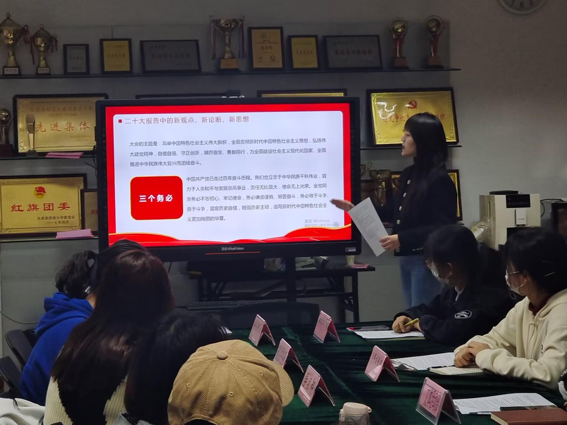 扬时代之帆,担青年之责。会议结束后,学生会成员纷纷表示将牢记党的教诲,持续学习党的二十大精神,提升思政觉悟,刻苦学习专业知识,增强创新意识,培养担当实干的工作作风,全心全意为同学们服务。本次学习会的开展有助于激励学生会成员夯实思想政治学习基础,提升思想站位,强化服务意识,以永不懈怠的精神状态和一往无前的奋斗姿态,担负起时代赋予的重任,让青春在全面建设社会主义现代化国家的火热实践中绽放绚丽之花。