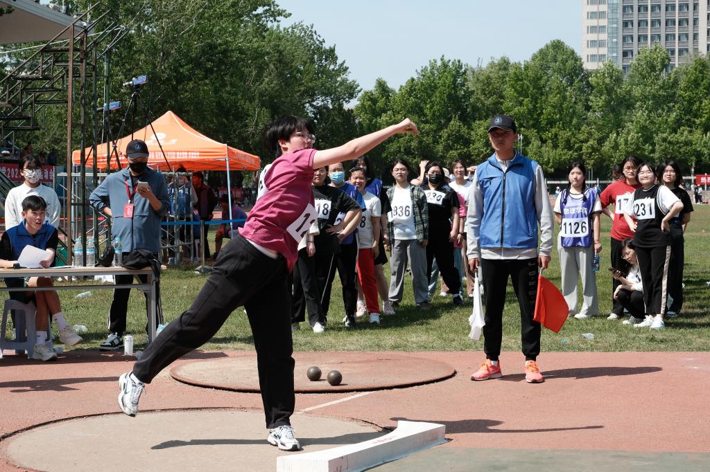 2023春季运动会铅球项目并取得优异成绩,其中,陈一诺同学在比赛中奋力拼搏,取得了第一名的好成绩。