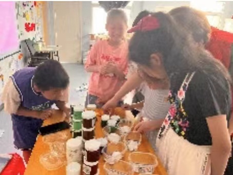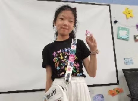 开始创作后,同学们投入到了对色彩的创意搭配当中,不少同学都对色彩混合的规则熟练运用。随着时间的推进,大家陆续完成了自己的作品,并且自豪地向大家展示自己的作品。
