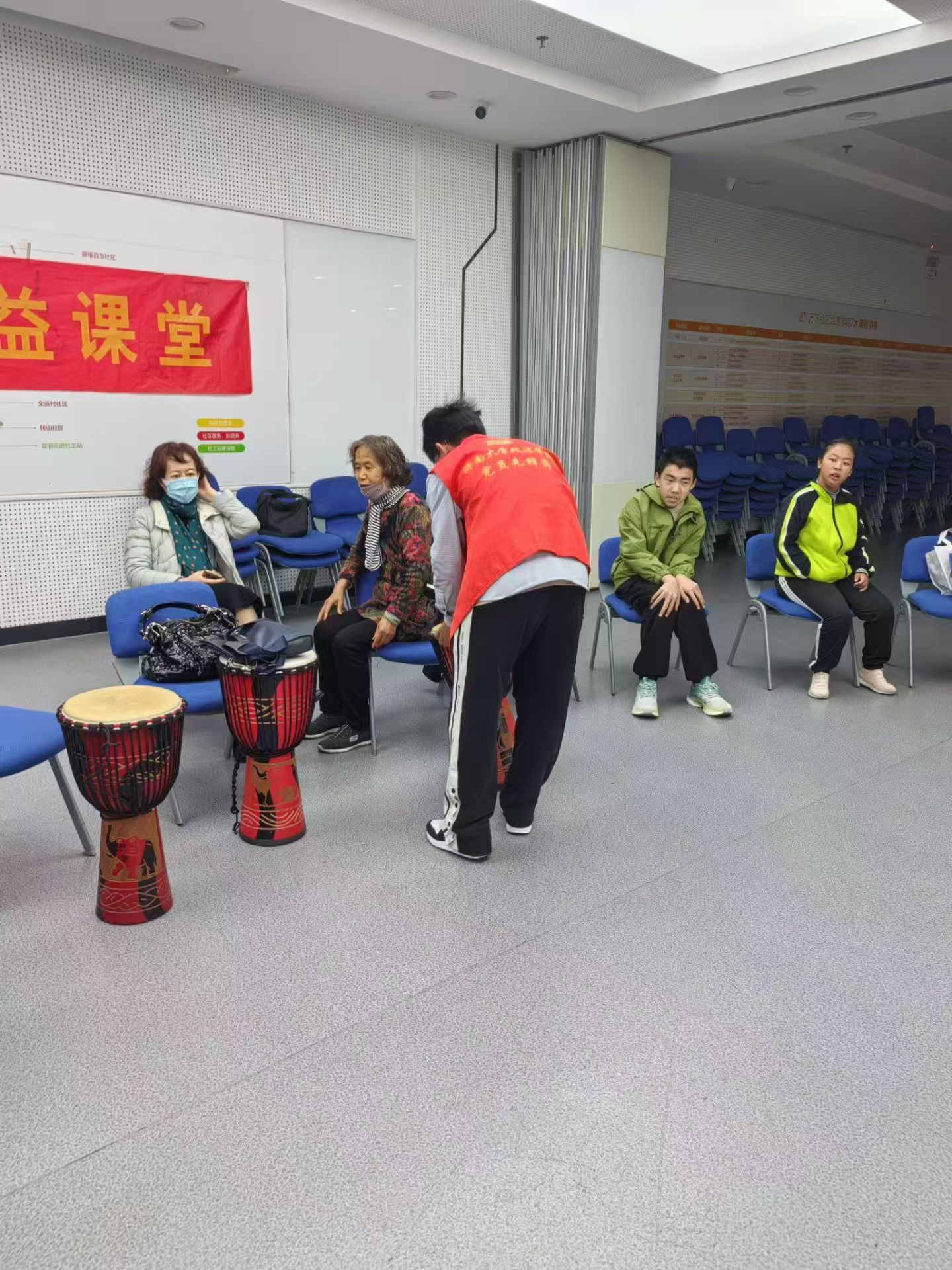 活动当天,志愿者们早早到达现场,为活动做准备。随后,他们面带微笑,热情地迎接每一位前来上课的残障儿童,用温暖和关爱为孩子们营造一个轻松愉悦的学习氛围。在专业老师的悉心指导下,孩子们投入到非洲鼓的学习中,他们认真聆听老师的讲解,仔细观察老师的示范,在老师教学完毕后,就迫不及待地拿起鼓槌,开始尝试敲击,教室里立刻回荡起了此起彼伏的击鼓声。随着教学的深入,孩子们逐渐找到了节奏,他们的敲击声愈发整齐而沉厚有力。在志愿者的陪伴下,孩子们渐渐释放自我,用歌声和鼓声表达他们内心的喜悦,使整个教室都洋溢着欢快的氛围。此次活动,为残障儿童带来了学习新技能的机会,帮助他们在音乐中找到乐趣,释放压力,促进了他们的心理健康。
