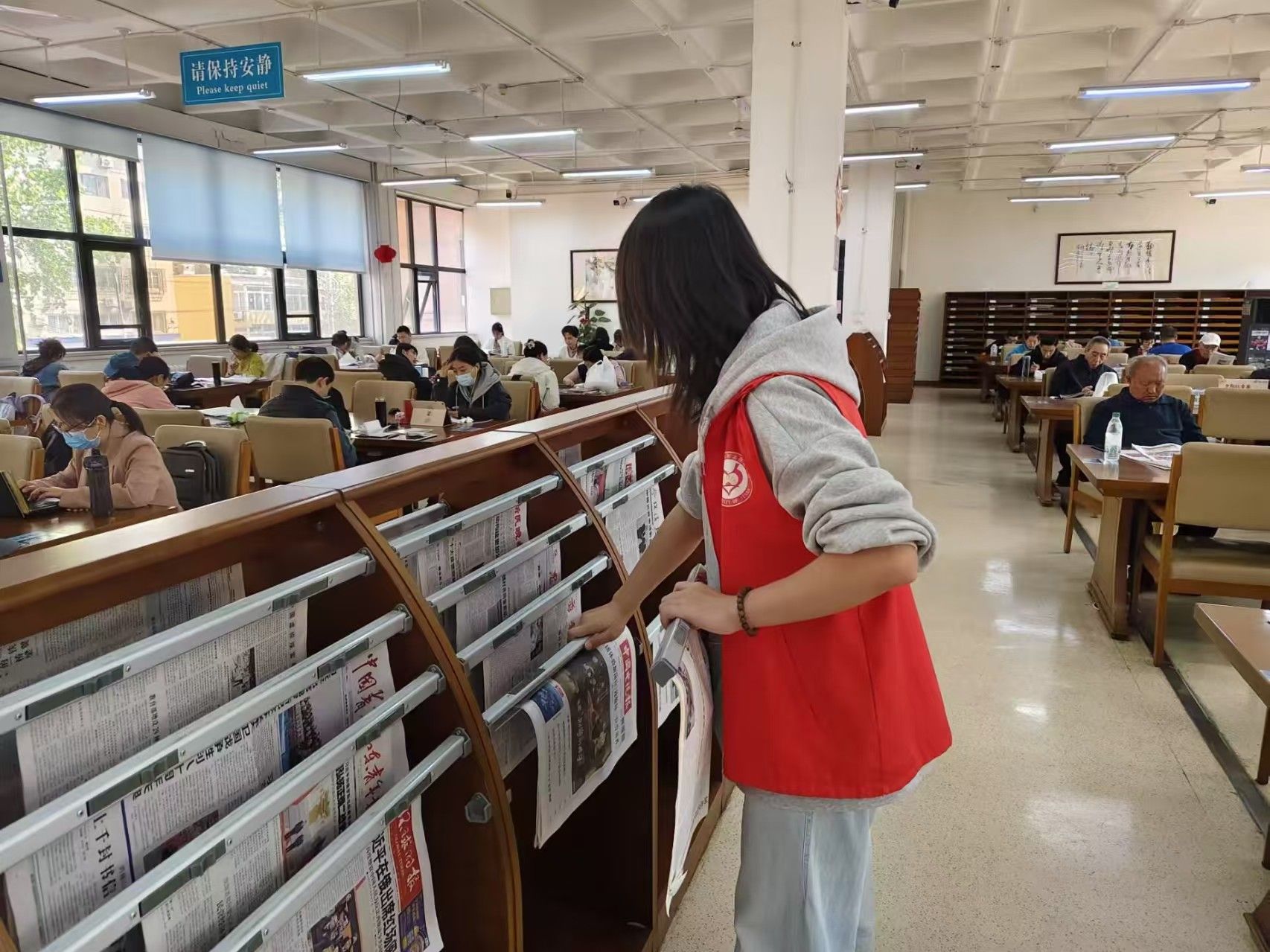 阳光先锋青年志愿者协会(以下简称“政法青协”)的志愿者们于2025年5月11日来到济南市图书馆,开展以“聆听泉韵,遨游书海”为主题的志愿活动。