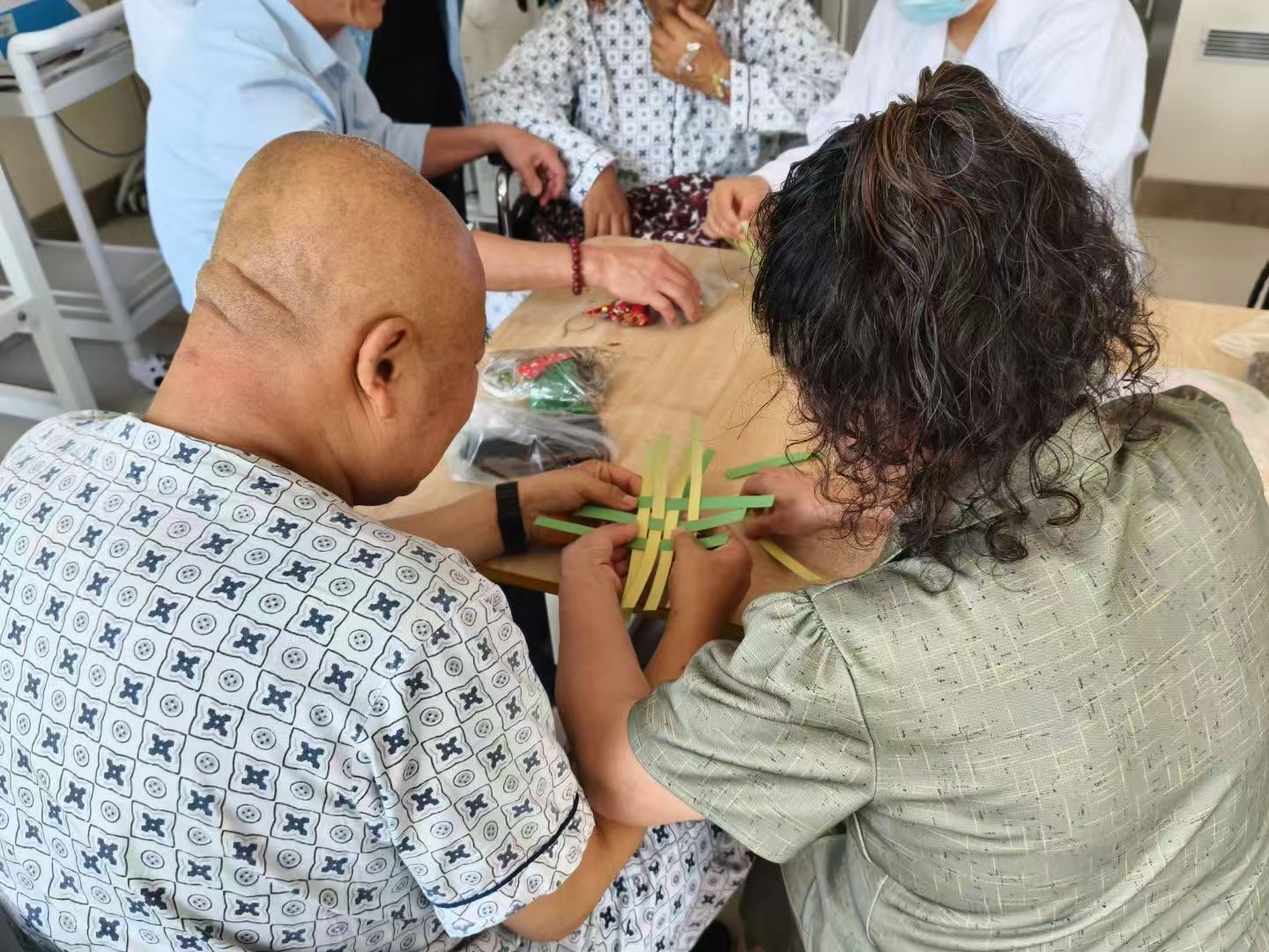 2022级社会工作专业实习生联合山东省立医院康复科,共同为住院患者策划了一场别开生面的“端午巧手寄安康”主题手工活动。活动将传统文化与康复治疗相融合,通过制作艾草香包、乌篷船,为患者营造了欢乐的节日氛围,传递人文关怀与康复希望。