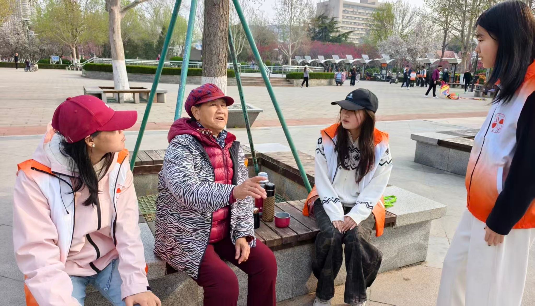 活动当天,起初,老人们只是远远观望,我们便主动走上前去,微笑问候,递上小礼品,慢慢打开了话匣子。一位退伍老兵的到来,让我们第一次如此真切地感受到陪伴的分量。他向我们讲述自己的人生经历,也坦诚地分享了自己的心中苦闷。结束时,他说:“你们一来,我想说的话就有人听了。”原来,我们做的并不只是宣传活动,而是在用倾听回应一份被长久忽视的情感需求。还有一幕让我们久久难忘。一位奶奶因前几年老伴去世,加之腿脚不便,不喜欢出门,而她的邻居是一位独居爷爷,经常会用小三轮车载她来广场散心,奶奶还为自己写歌,慢慢度过自己的情绪寒冬。这份朴素的邻里守望,让我们看到了社区里最动人的互助力量。最后,合照一拍,我们所感受到的不只是活动的圆满成功,更是倾听陪伴的生动体现。