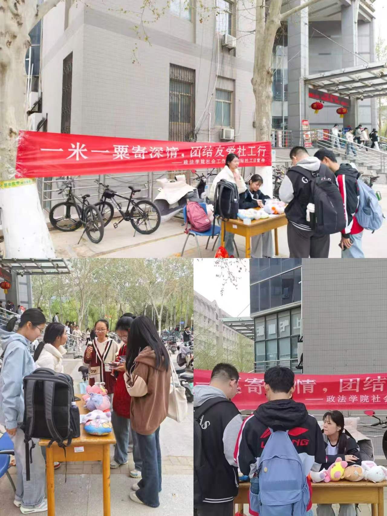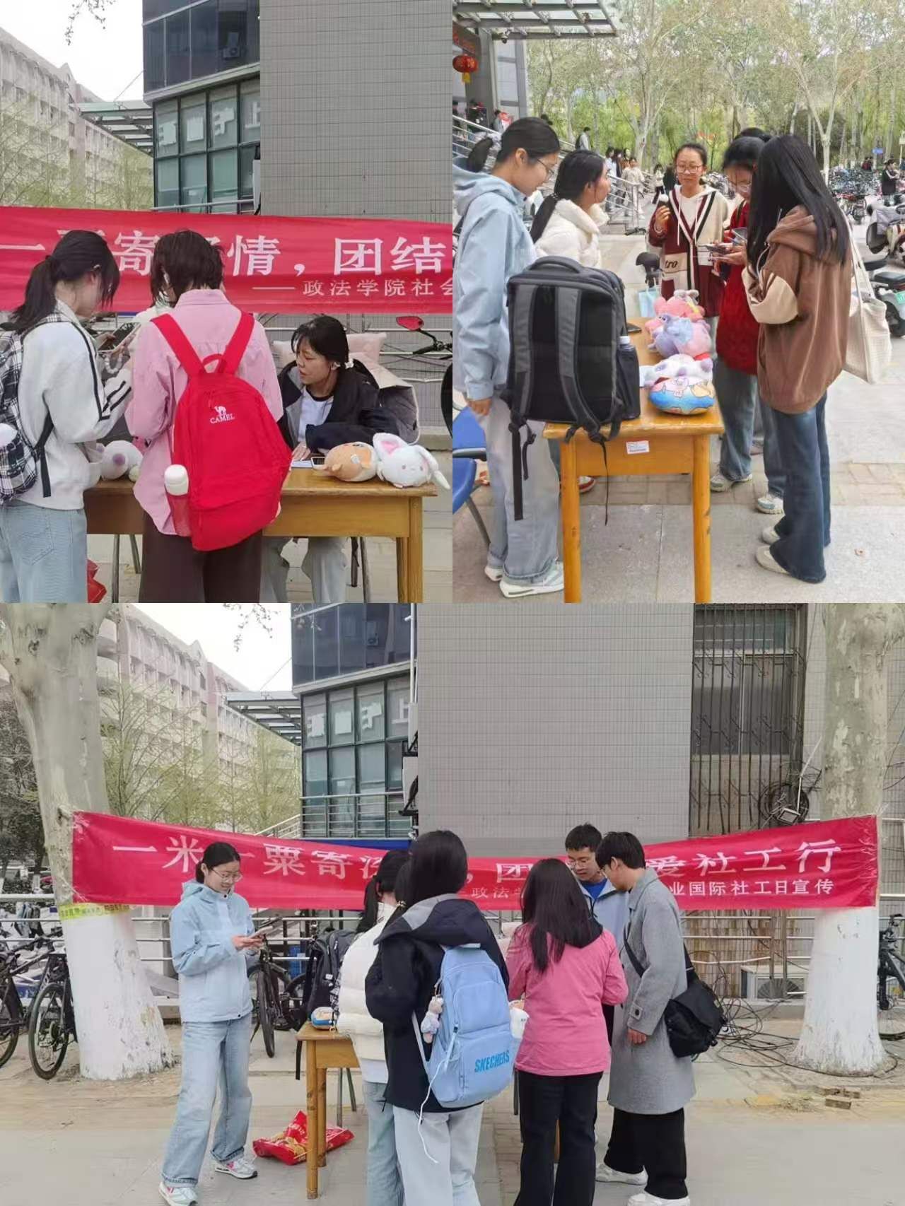 社会工作专业学生在第八食堂广场开展了国际社工日宣传活动,本次“一米一粟寄深情,团结友爱社工行”为本次国际社工日系列倡导之一。