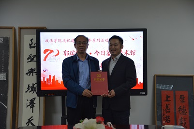 于三教213会议室举办郭瑞校友 · 今日鉴藏美术馆名家作品捐赠仪式,我校纪委副书记陈延东,绅士漫画